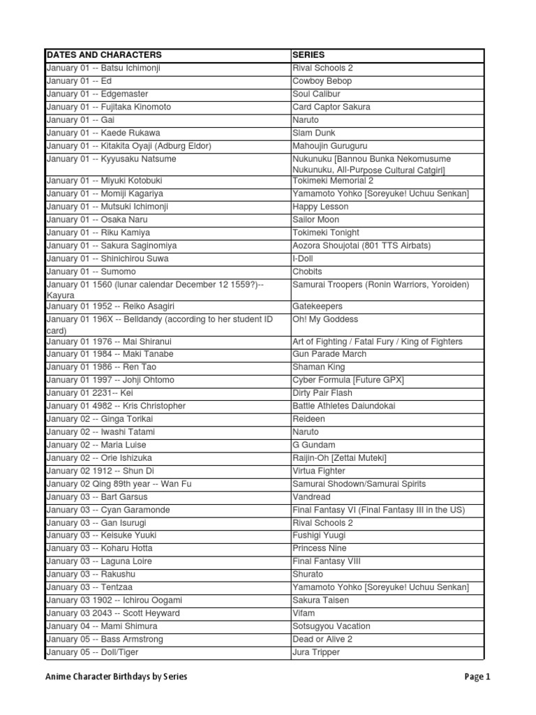 List Of Anime Characters Born On March 16th Canon Birthdays